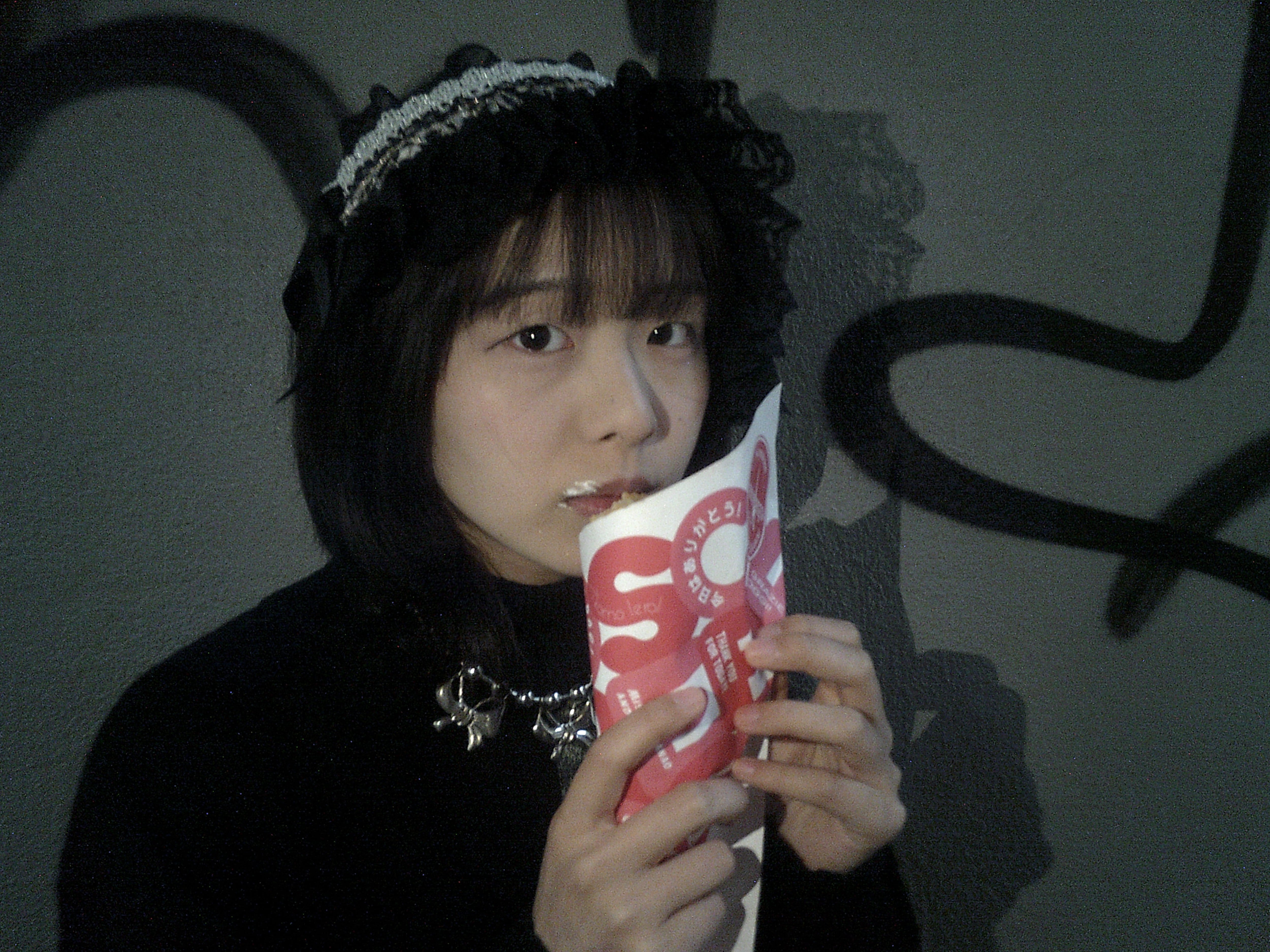 黒のフリフリきらきらボンネット風ヘッドドレス